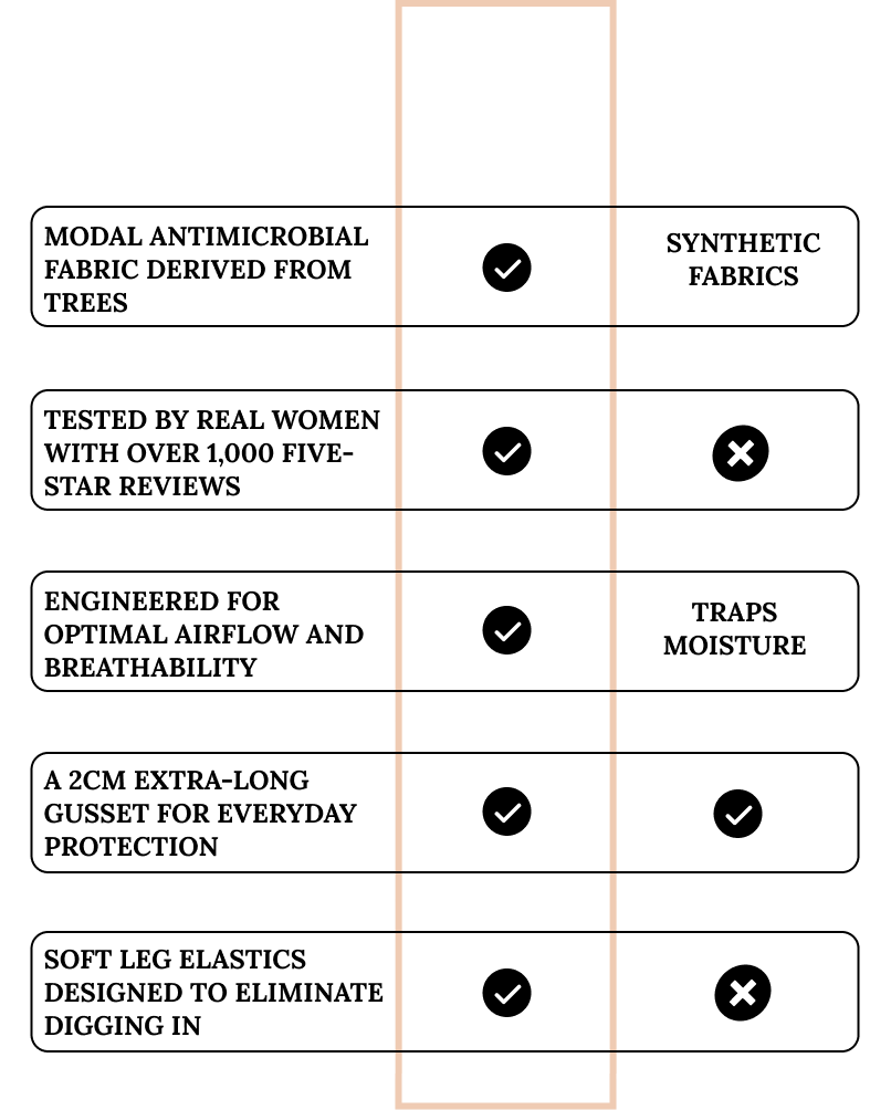 Our signature filters discourage bacterial growth, wick away moisture, and keep you feeling fresh all day helping reduce the risk of irritation and unwanted infections.